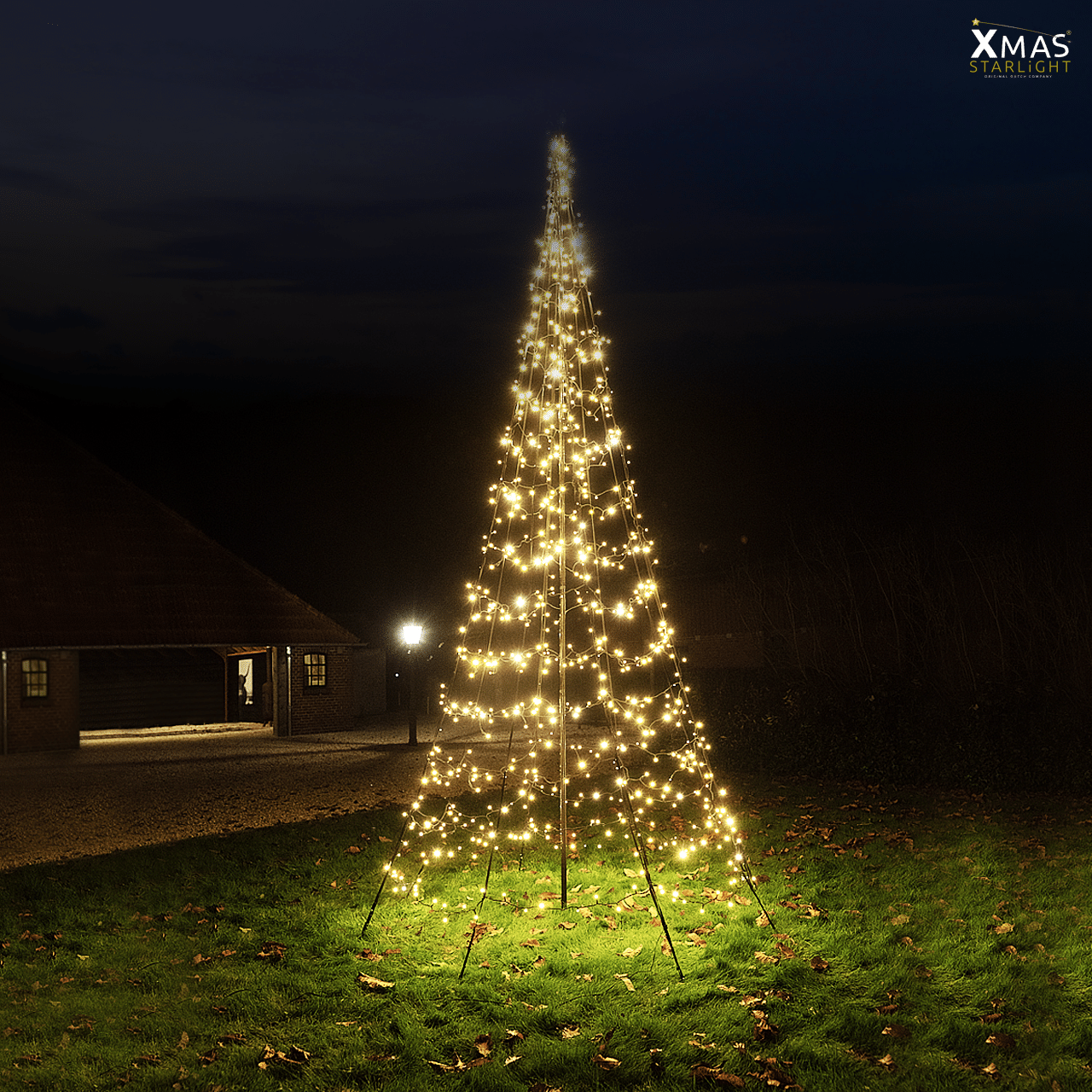 De Xmas Starlight® 3 meter met 480 warm witte leds. De betoverende Xmas Starlight® wordt compleet geleverd met een robuuste aluminium mast van 3 meter hoog, inclusief een handige grondbuis en haringen voor een stevige verankering. De warm witte gloed van de 480 led lichtjes wordt vanuit elke hoek perfect waargenomen, waardoor dit een werkelijk schitterende verlichte kerstboom is die bewondering oogst, zowel vanuit huis, kantoor of vanaf de straat.